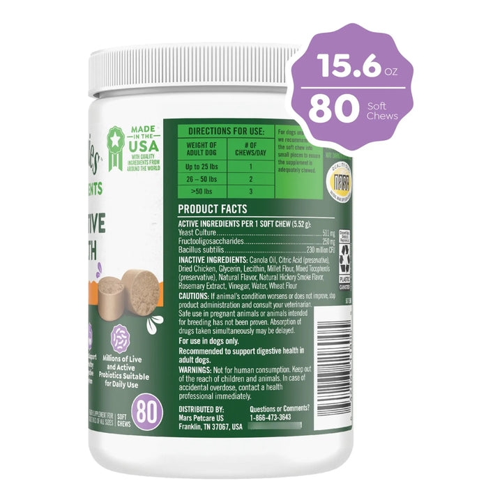 Cada masticable contiene millones de probióticos vivos, prebióticos y posbióticos que trabajan en sinergia para fortalecer su sistema digestivo desde el primer día. Sin sabores artificiales, sin conservantes dañinos, solo el poder de GREENIES Biotic Blend, una fórmula exclusiva que respalda la salud intestinal y promueve heces más firmes y fáciles de eliminar. Además, están hechos con pollo real, ¡asegurando que tu mascota los devore como un premio!