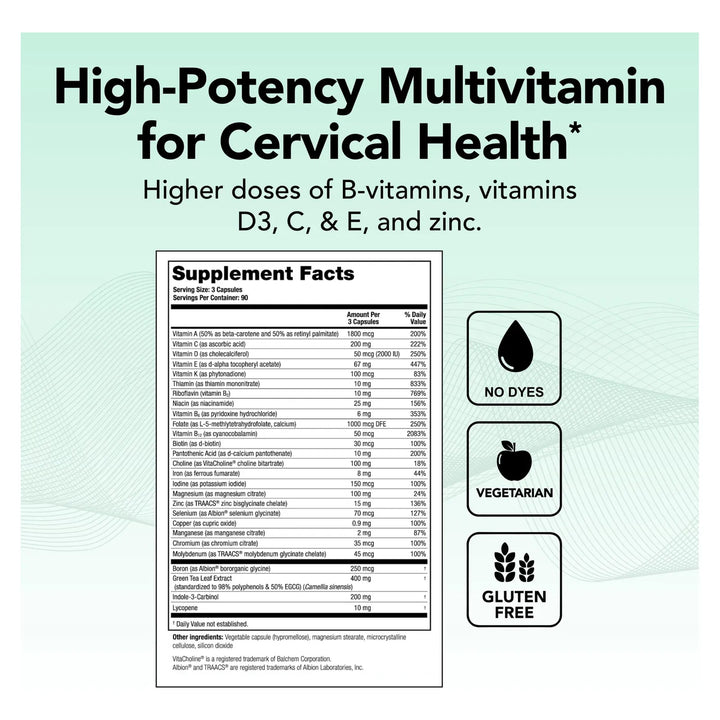 - 🌸 Salud Cervical Protegida: Nutrientes específicos como I3C y extracto de té verde trabajan para mantener tus células saludables.