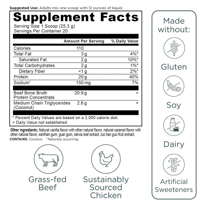 - 🌿 Ingredientes limpios y puros: Hecho con huesos de res criados en pastoreo, sin OMG ni hormonas de crecimiento.