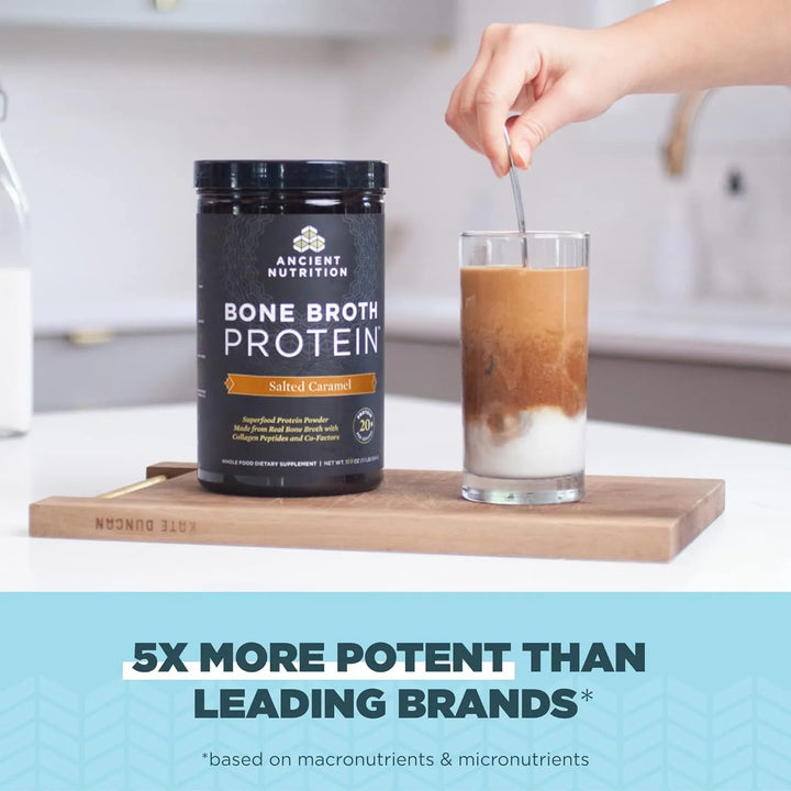 ¿Sueñas con una piel radiante, un intestino saludable y articulaciones fuertes, pero no tienes tiempo para preparar caldo de huesos tradicional? Ancient Nutrition ha creado la solución perfecta para ti: Proteína en Polvo de Caldo de Huesos con Sabor a Caramelo Salado. Este superalimento en polvo combina la sabiduría ancestral con la ciencia moderna para ofrecerte todos los beneficios del caldo de huesos en una forma conveniente y deliciosa.