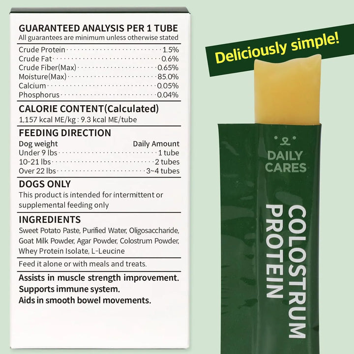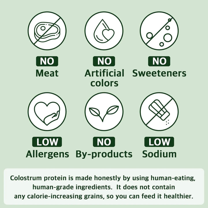 - Refuerzo Inmunológico Natural 🛡️: El calostro fortalece las defensas de tu perro, protegiéndolo de virus y bacterias.