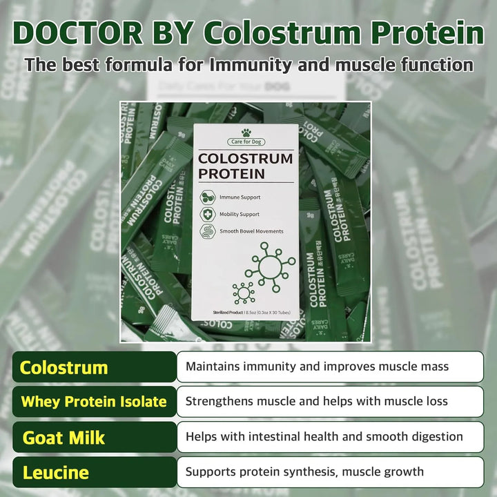 ¿Te preocupa ver a tu perro perder energía o sufrir de un sistema inmunológico débil? Con el paso de los años, nuestros fieles compañeros pueden enfrentar desafíos de salud, especialmente cuando su inmunidad disminuye. La Proteína de Calostro Dr.BY está diseñada para brindar el apoyo que tu mascota necesita, combinando ingredientes de alta calidad para fortalecer su sistema inmunológico, aumentar su peso de manera saludable y mejorar su actividad muscular.