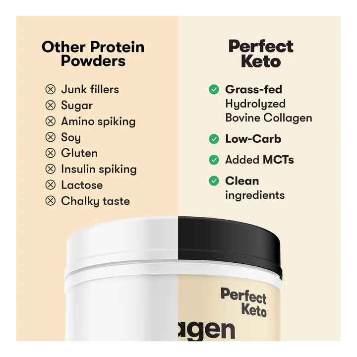 El colágeno actúa como los bloques de construcción de tu cuerpo, reparando tejidos conectivos mientras los MCT se convierten rápidamente en energía. Juntos, estimulan la producción natural de colágeno y cetosis, creando un círculo virtuoso de bienestar.