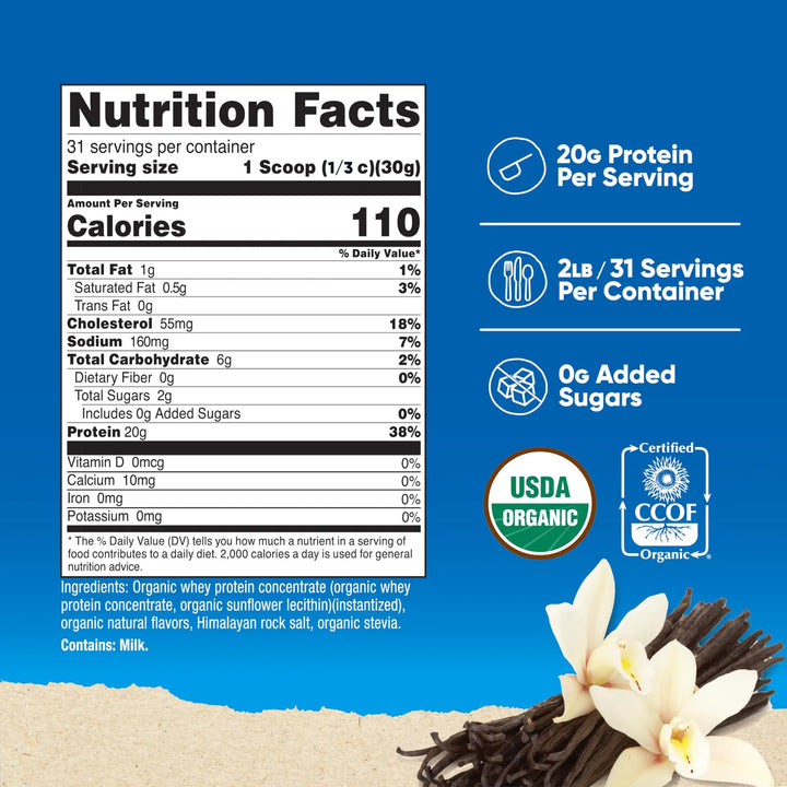 Imagina despertar cada mañana con la energía y vitalidad que necesitas para conquistar el día. Nuestro Concentrado de Proteína de Suero Orgánico no solo te brinda los nutrientes esenciales para tu cuerpo, sino que también lo hace con un sabor exquisito a vainilla francesa que hará que cada batido sea un momento de placer. Sin gluten, sin OMG y probado por terceros, esta proteína es la elección perfecta para quienes buscan calidad y confianza en cada gramo.