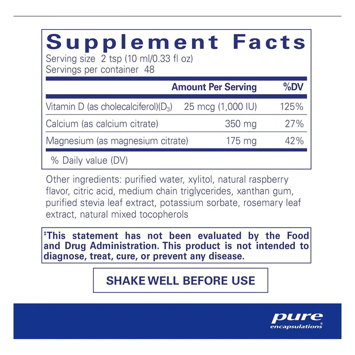 ¿Cansado de suplementos difíciles de tragar o que no se absorben bien? Descubre la solución líquida que tu cuerpo agradecerá. El Calcio Magnesio Vitamina D Líquido de Pure Encapsulations es la forma más práctica y eficaz de cuidar tu salud ósea y cardiovascular, con una fórmula diseñada para máxima biodisponibilidad.