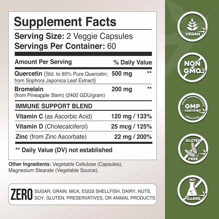 1. Potente combinación de ingredientes: Quercetina, bromelina, vitamina C y zinc trabajan en sinergia para maximizar los beneficios. 💪
