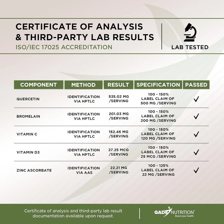 - Refuerza tu sistema inmunológico 🛡️: Combina quercetina, vitamina C y zinc para una protección integral.
