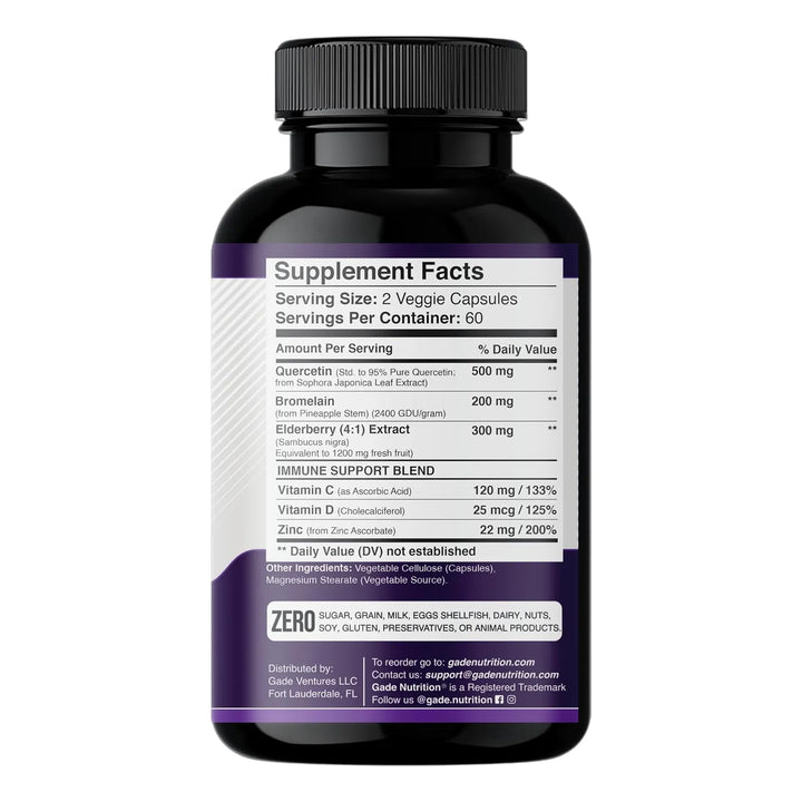 Este poderoso suplemento no solo combate el estrés oxidativo, sino que también apoya tu bienestar general con ingredientes seleccionados cuidadosamente. La combinación de quercetina dihidratada, bromelina y saúco trabaja sinérgicamente para reducir la liberación de histaminas, mientras que el zinc y la vitamina D3 fortalecen tus defensas naturales. ¡Es como un escudo invisible para tu cuerpo!