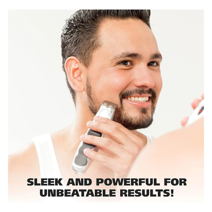 ¿Qué harías con una hora de autonomía inalámbrica? Recorta, da forma y perfecciona tu barba o bigote sin ataduras. Incluye 14 longitudes de corte (desde 1/16" hasta 1/2") y un peine ajustable de 6 posiciones para personalizar tu estilo al milímetro. ¿Vello nasal rebelde? El recortador de nariz incluido resuelve el problema de forma higiénica y sin dolor. Todo esto, respaldado por Wahl, una marca confiable desde 1919, utilizada por barberos profesionales.