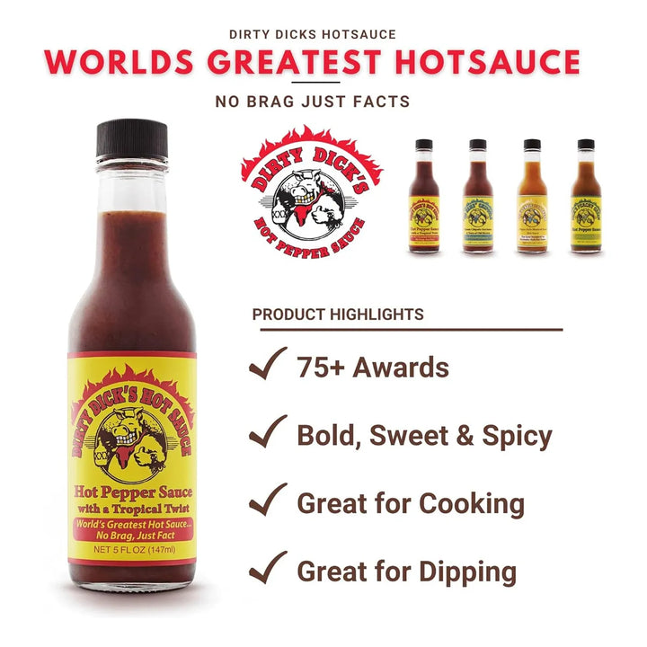 La magia de la Salsa Dirty Dick radica en su formulación única. Los ajíes seleccionados se fusionan con frutas tropicales maduradas al sol, creando una salsa que carameliza al contacto con el calor, intensificando los sabores. Su proceso de maceración lenta permite que los ingredientes liberen sus esencias, logrando una armonía que potencia cualquier alimento.