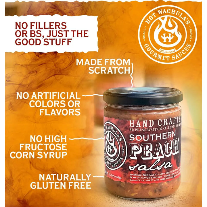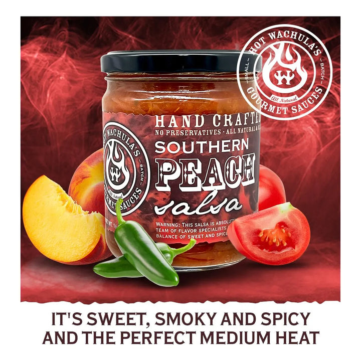 Imagina una salsa que combine la dulzura natural del melocotón con un toque picante perfectamente equilibrado. Nuestra Hot Wachula's Southern Peach Salsa no es solo un acompañante, es una experiencia gastronómica diseñada para aquellos que buscan sabores auténticos y memorables. Cada bocado es una explosión de frescura y calidad, elaborada con ingredientes 100% naturales y sin conservantes artificiales. ¿Listo para transformar tus platos?