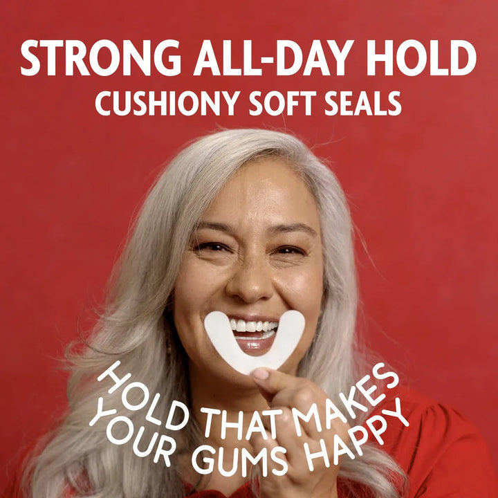 Nuestros sellos adhesivos actúan creando una barrera segura entre tu dentadura postiza y las encías. Su fórmula especial se adapta a la forma de tu dentadura, proporcionando una sujeción firme y cómoda durante horas. Además, la menta fresca no solo neutraliza los olores, sino que también te deja una agradable sensación de frescor.