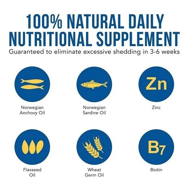 - 🐶 Reduce la caída del pelo y fortalece los folículos capilares con zinc y vitamina E.