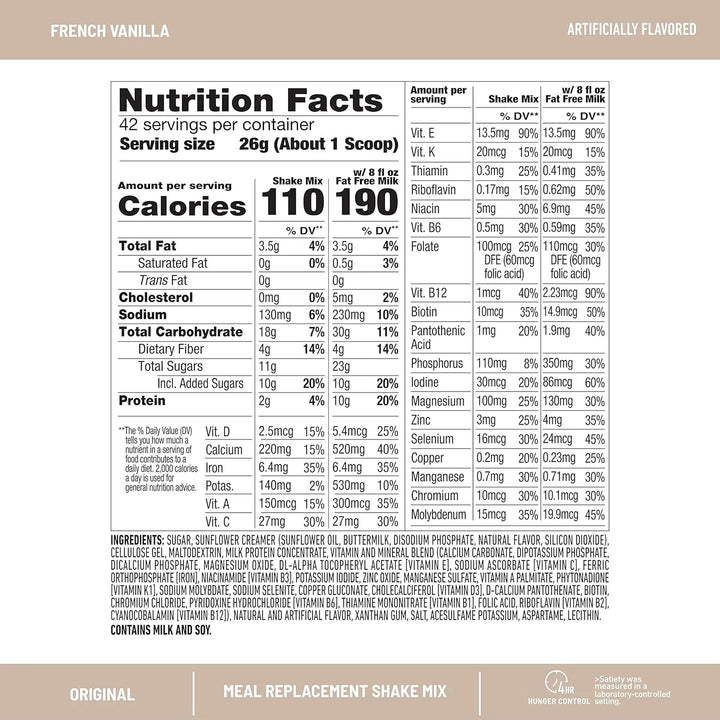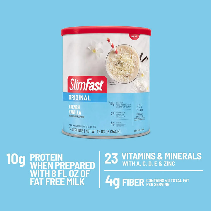 Pero eso no es todo. SlimFast Original Vainilla está enriquecido con 24 vitaminas y minerales esenciales, incluyendo vitamina A, C, D, E y zinc, para apoyar tu sistema inmunológico y digestivo. Además, su fórmula sin gluten lo hace accesible para todos, sin importar tus restricciones dietéticas. ¿Lo mejor? Puedes usarlo como ingrediente en tus recetas favoritas, dándole un toque de sabor y nutrición a tus platillos.