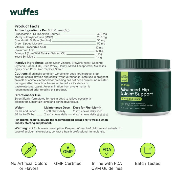 ¿Tu perro sufre de dolor en las articulaciones o dificultad para moverse? Imagina verlo jugar y correr como antes, lleno de energía y vitalidad. Nuestro Soporte de Cadera y Articulaciones Wuffes está diseñado para aliviar el dolor y mejorar la movilidad de tu mascota, gracias a una fórmula avanzada respaldada por la ciencia. No dejes que el dolor limite su felicidad.