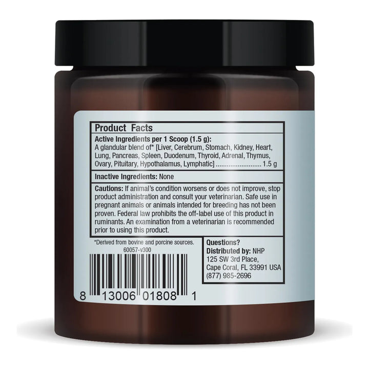 Formulado por veterinarios, este producto es una mezcla única de 16 concentrados glandulares liofilizados, provenientes de vacas y cerdos criados en campo, libres de hormonas y antibióticos. Es 100% natural, sin OMG, gluten ni soja, lo que lo hace seguro y efectivo para mascotas de todas las edades y razas.