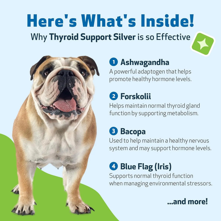 El Soporte Tiroides Plateado contiene una mezcla única de hierbas y nutrientes que trabajan juntos para estimular suavemente la glándula tiroides, promoviendo la producción equilibrada de hormonas. Esto ayuda a regular el metabolismo, la energía y la salud general de tu gato.