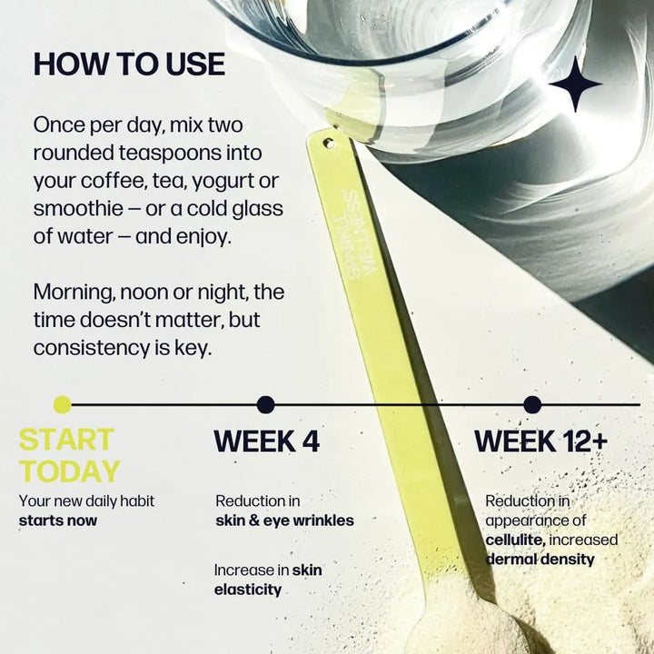 - Mezcla una porción diaria (5,000 mg) en tu bebida favorita: café, batido o agua.