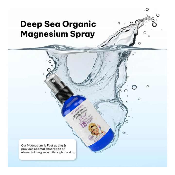 Este innovador producto combina las propiedades del glicinato de magnesio, citrato de magnesio y sal de Epsom para ofrecerte una fórmula altamente biodisponible que tu cuerpo absorbe directamente a través de la piel. Olvídate de pastillas difíciles de tragar o suplementos que causan molestias digestivas. Con nuestro spray, el magnesio llega donde más lo necesitas, sin pasar por tu sistema digestivo.