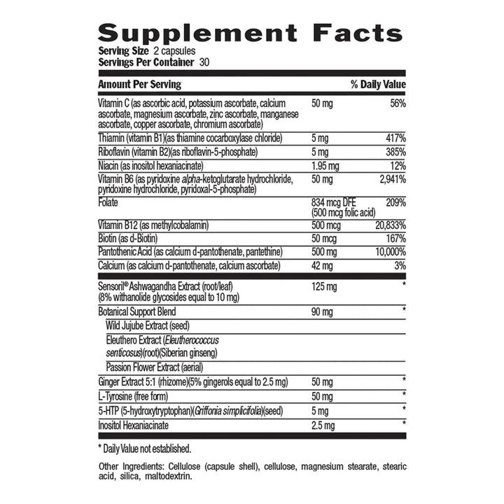 No es solo un suplemento más. Es tu escudo contra el caos diario, combinando la poderosa Ashwagandha Sensoril (reconocida por sus propiedades adaptogénicas) con vitaminas B esenciales para potenciar tu energía y bienestar emocional. Olvídate de la niebla mental, la irritabilidad y el agotamiento. Este es el aliado natural que tu cuerpo ha estado esperando.