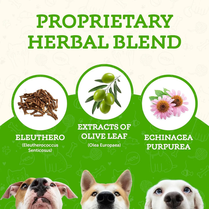 Greg Tilford, fundador de Animal Essentials y reconocido en el cuidado natural de mascotas, ha creado este suplemento con extractos de hoja de olivo, equinácea y eleutero, ingredientes clínicamente probados para estimular las defensas naturales. No es solo un producto más; es una solución confiable que ha sido desarrollada en colaboración con más de 600 veterinarios en todo el mundo.