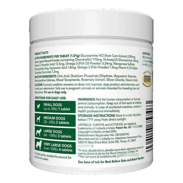 - Determina la dosis adecuada según el peso de tu perro (1-4 tabletas diarias).