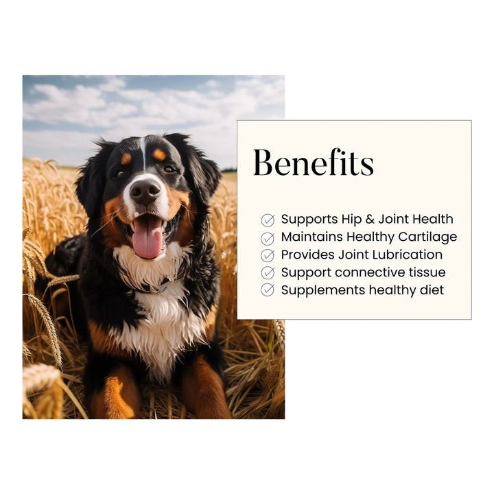 - 🌿 Natural y seguro: Sin ingredientes artificiales, su fórmula suave cuida su estómago mientras nutre sus articulaciones.
