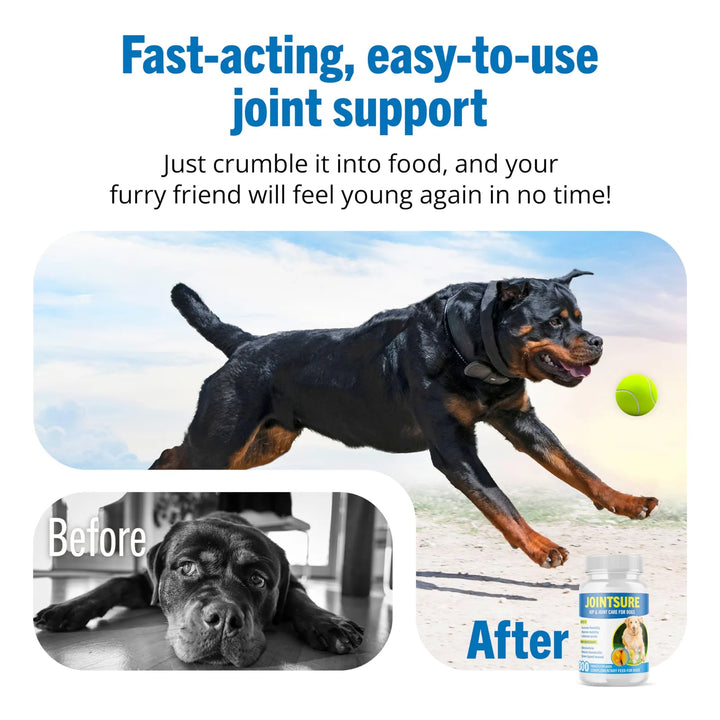 Formulado por veterinarios y fabricado en EE.UU., este suplemento es la solución natural que tu perro necesita. Con ingredientes de alta calidad como glucosamina, condroitina y mejillón de labios verdes, no solo alivia el dolor, sino que también lubrica sus articulaciones y fortalece su cartílago. Imagina ver a tu perro jugar como cuando era cachorro, sin molestias ni rigidez. ¡Esa es la transformación que ofrecemos!
