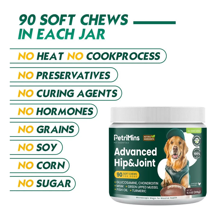 ¿Tu perro ya no corre con la misma alegría de antes? ¿Notas que le cuesta levantarse o subir escaleras? El dolor articular no solo afecta su movilidad, sino también su felicidad. Nuestro Suplemento Avanzado para Cadera y Articulaciones está diseñado para devolverle a tu compañero peludo la vitalidad que merece. Con una fórmula científicamente probada, este suplemento no solo alivia el dolor, sino que también fortalece sus articulaciones para un futuro más activo.