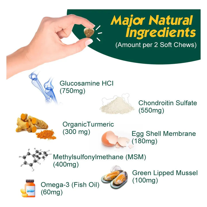 - 🚀 Alivio rápido y duradero: Niveles dobles de glucosamina y condroitina para resultados visibles en menos tiempo.