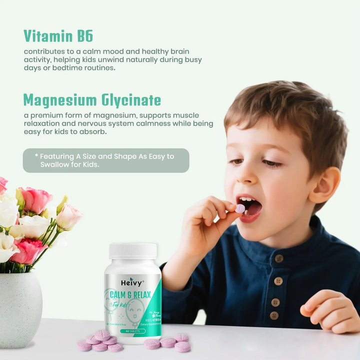- 🌿 Relajación Natural: El glicinato de magnesio y la vitamina B6 trabajan juntos para calmar la mente y el cuerpo, ayudando a tu hijo a enfrentar el día con más tranquilidad.