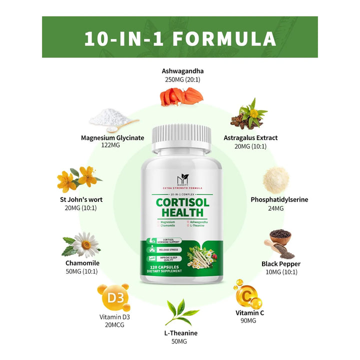 ¿Sientes que el estrés controla tu vida? ¿Te cuesta relajarte, dormir bien o mantener la claridad mental? No estás sola. Millones de mujeres enfrentan estos desafíos diariamente, pero hay una solución. Descubre cómo nuestro Suplemento de Cortisol 10 en 1 puede ayudarte a recuperar el control, reducir el estrés y mejorar tu bienestar general.