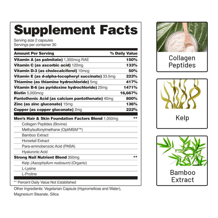 ¿Sueñas con un cabello más grueso, una barba más llena y uñas más fuertes? Nuestro suplemento está diseñado para hombres que buscan resultados visibles. No más esperar meses para ver cambios mínimos. Con ingredientes clínicamente probados como biotina, queratina y colágeno, este producto nutre desde dentro hacia fuera, abordando la raíz del problema: la deficiencia de nutrientes.
