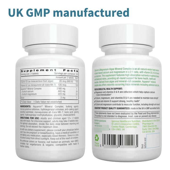 El calcio de algas rojas se disuelve rápidamente en tu organismo gracias a su estructura porosa, mientras que el magnesio del agua de mar repone electrolitos esenciales. La vitamina D3 activa la absorción, y la K2 actúa como un GPS, llevando el calcio directamente a tus huesos. El boro frena su eliminación, creando un círculo virtuoso de nutrición.