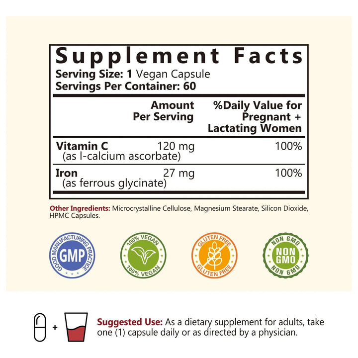 ¿Sientes fatiga constante, falta de energía o debilidad? Podrías estar sufriendo de deficiencia de hierro, un problema común que afecta a millones de personas, especialmente a mujeres embarazadas y en período de lactancia. Pero no te preocupes, hemos creado la solución perfecta para ti: nuestro Suplemento de Hierro Suave 27 mg Bisglicinato + 120 mg Vitamina C, diseñado para brindarte una absorción óptima sin los molestos efectos secundarios como el estreñimiento.