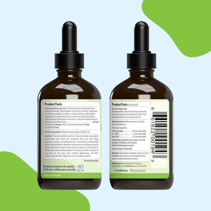 La fórmula actúa directamente en las encías y dientes de tu perro, combinando ingredientes como el óxido de zinc para reducir bacterias y la coenzima Q10 para promover la regeneración de tejidos. La caléndula y la raíz de malvavisco proporcionan un alivio suave y natural, mientras que los componentes activos trabajan para mantener un equilibrio saludable en la boca de tu mascota.
