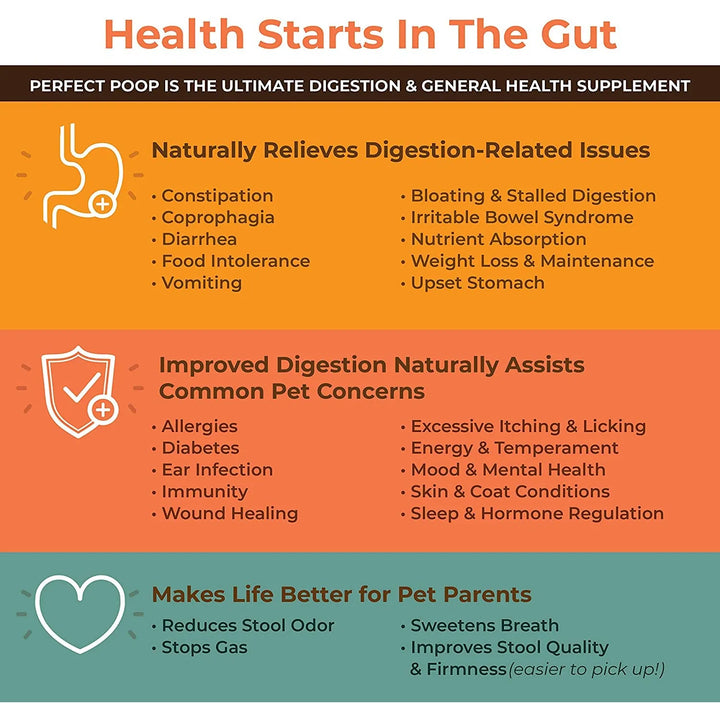 ¿Tu perro sufre de problemas digestivos como diarrea, estreñimiento o mal aliento? Imagina poder aliviar su malestar con un solo producto que no solo mejora su digestión, sino que también fortalece su sistema inmunológico y revitaliza su energía. Nuestro suplemento para la digestión y salud de los perros Perfect Poop es la respuesta que estabas buscando.