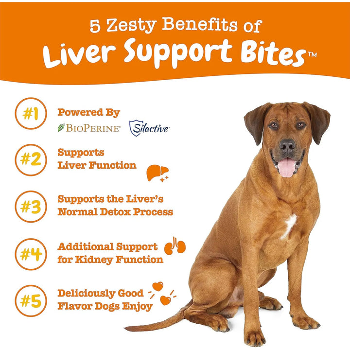 Imagina a tu perro recuperando su vitalidad, disfrutando cada día como cuando era un cachorro. Este suplemento no solo ayuda a desintoxicar su hígado, sino que también fortalece su sistema inmunológico y mejora su digestión. Cada masticable está repleto de nutrientes esenciales como Silactive (cardo mariano estandarizado) y BioPerine, que maximizan la absorción de los beneficios.