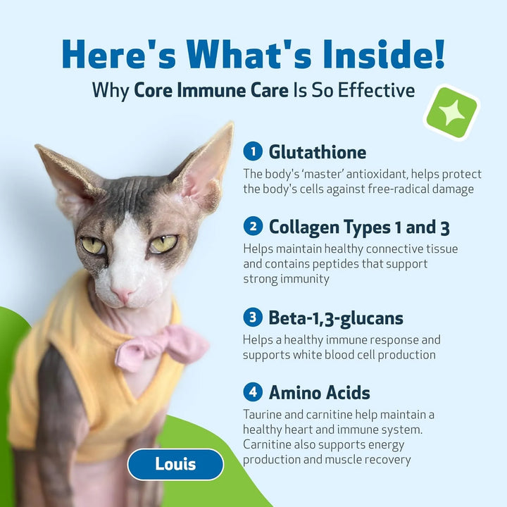 Cada cucharada de este apoyo inmunológico holístico está cargada de antioxidantes como glutatión y licopeno, que combaten los radicales libres y promueven un equilibrio celular óptimo. Además, con vitamina E, beta-glucanos y colágeno tipo 1 y 3, tu mascota recibirá los nutrientes esenciales para mantener sus defensas fuertes, sin importar su edad. ¿No es eso lo que deseas para quien te llena de alegría?