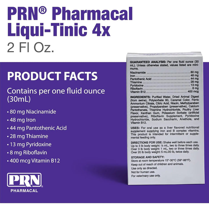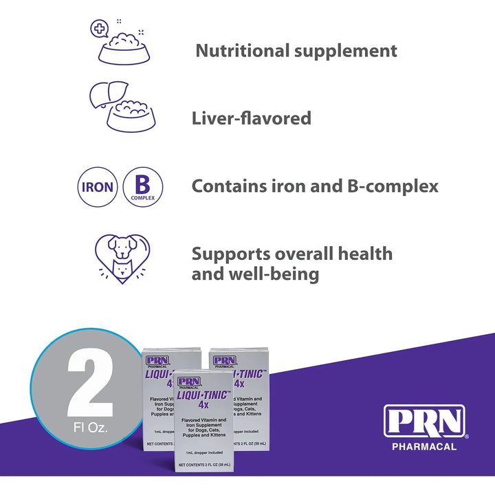 ¿Tu mascota luce cansada o sin energía? Sabemos lo difícil que es ver a nuestro compañero peludo sin vitalidad. Por eso, presentamos el suplemento nutricional perfecto para devolverle ese brillo y salud que tanto merece. Con PRN Pharmacal Liqui-Tinic 4X, no solo estás comprando un producto, sino una solución diseñada para nutrir y revitalizar a perros y gatos desde 1978.