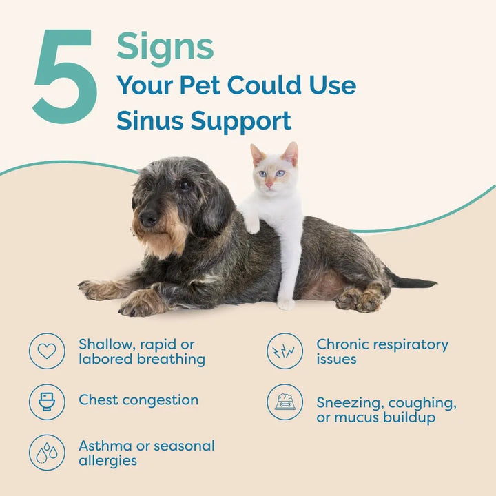 ¿Tu perro o gato sufre de congestión nasal, estornudos constantes o dificultad para respirar? Sabemos lo angustiante que es ver a tu compañero peludo incómodo y sin energía. El Suplemento Líquido de Apoyo Sinusal para Mascotas está diseñado para brindar alivio rápido y efectivo, ayudando a tu mascota a respirar mejor y recuperar su vitalidad.