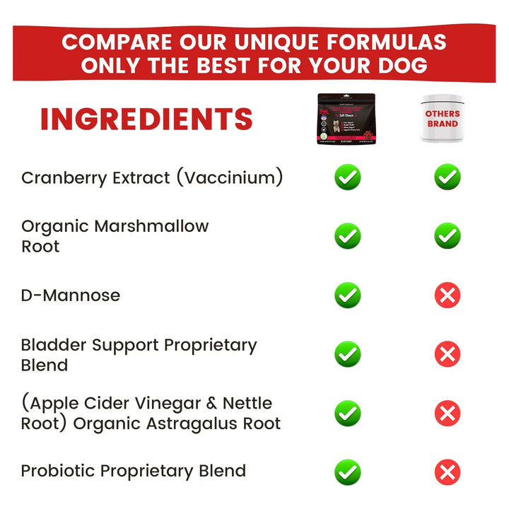 ¿Tu perro sufre de infecciones urinarias o incontinencia? No dejes que las molestias afecten su energía y felicidad. Nuestros Masticables de Arándano están diseñados por expertos para brindar un apoyo integral al tracto urinario, riñones y vejiga, con ingredientes premium que fortalecen su sistema inmunológico y promueven una vida activa. Cada mordida es un paso hacia su bienestar.
