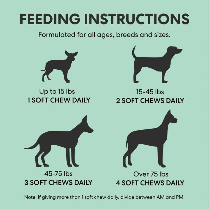 - Determina la dosis según el peso de tu perro (1 masticable para menos de 15 lbs, 2 para 15-45 lbs, etc.)