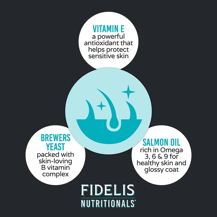 Los ácidos grasos Omega 3-6-9 y la vitamina E actúan en sinergia para reparar la barrera cutánea, reduciendo la inflamación y promoviendo la regeneración celular. El aceite de salmón aporta DHA y EPA, esenciales para un pelaje sedoso, mientras que los antioxidantes combaten los radicales libres. ¡Resultados visibles en semanas!