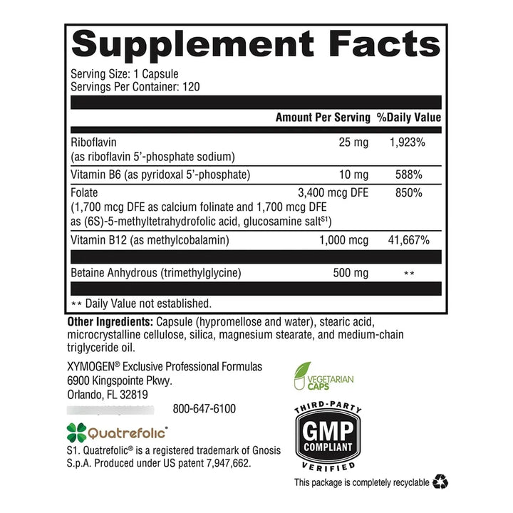 Este suplemento no solo combina nutrientes esenciales como folato metílico, vitamina B12 (metilcobalamina), riboflavina y vitamina B6, sino que lo hace en sus formas más activas para una absorción inmediata. ¿Por qué conformarte con menos cuando puedes darle a tu cuerpo lo mejor? Cada cápsula está diseñada para trabajar en armonía con tu metabolismo, apoyando la producción de neurotransmisores, la desintoxicación natural y la salud cardiovascular. No es solo un suplemento, es una inversión en tu calidad de vida.