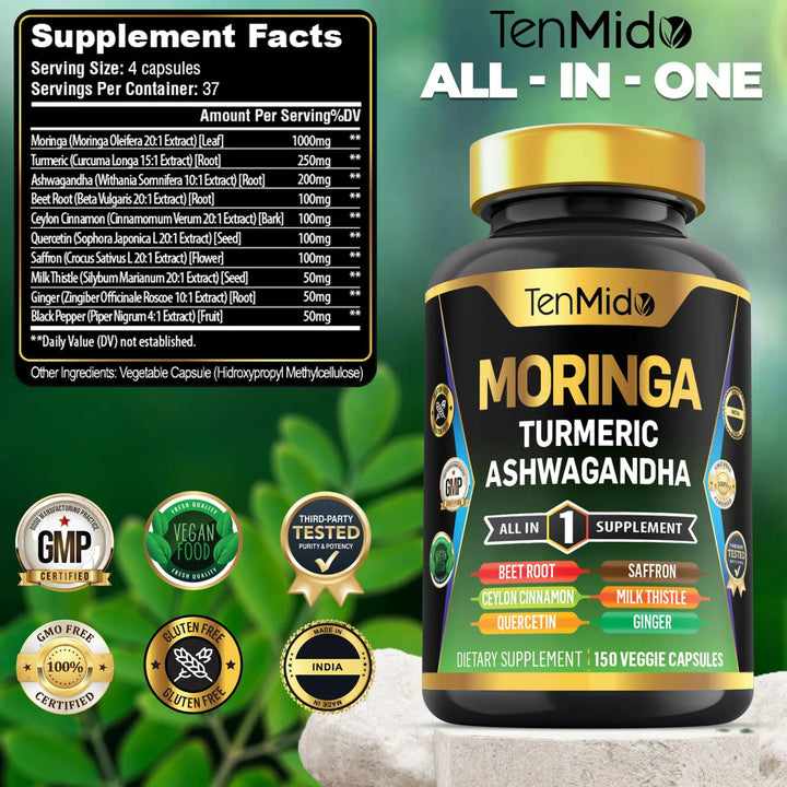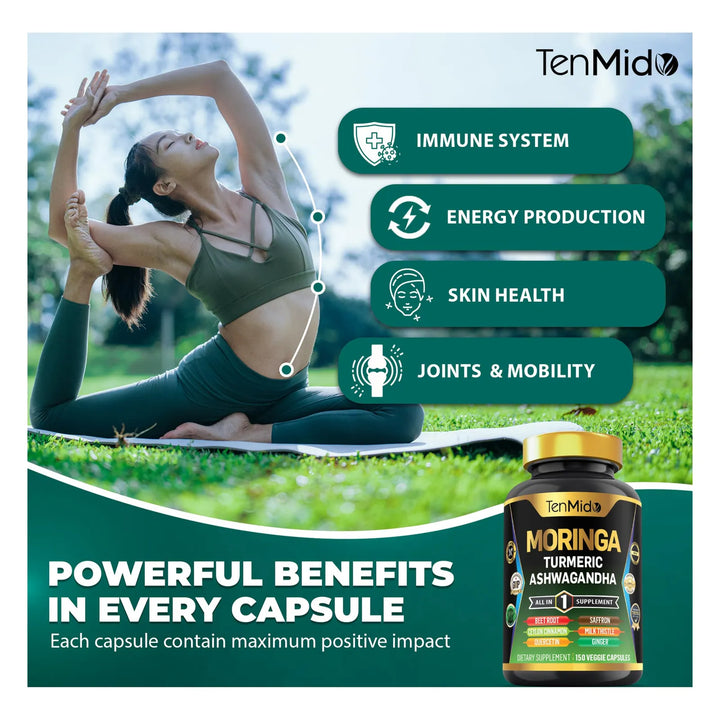 Este poderoso suplemento combina los mejores extractos de la naturaleza en una sola cápsula. Con moringa, cúrcuma, ashwagandha y otros 7 ingredientes clave, cada dosis te brinda un cóctel de nutrientes diseñado para potenciar tu salud. Olvídate de tomar múltiples pastillas al día; ahora todo lo que necesitas está en un solo lugar.