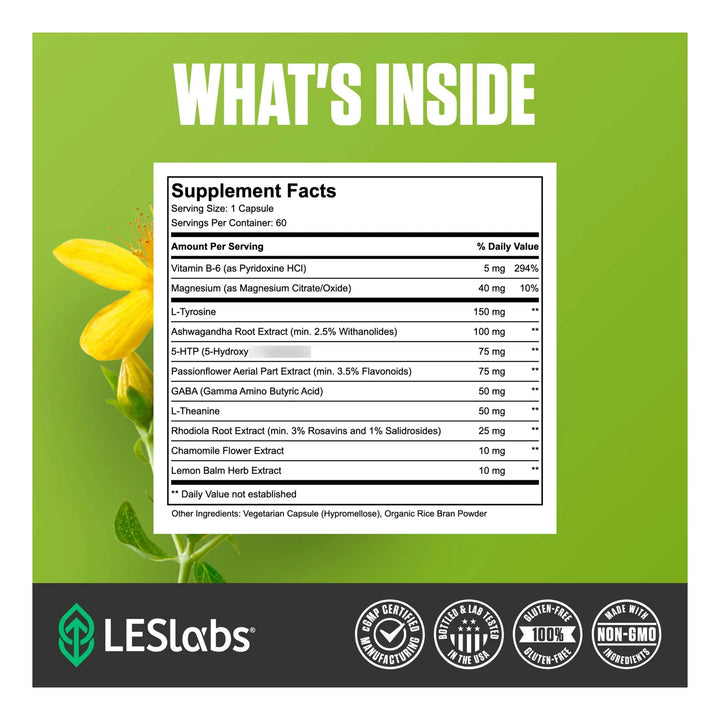 Este poderoso blend de ingredientes clínicamente estudiados, como 5-HTP, Ashwagandha y L-Teanina, trabaja en sinergia para:
