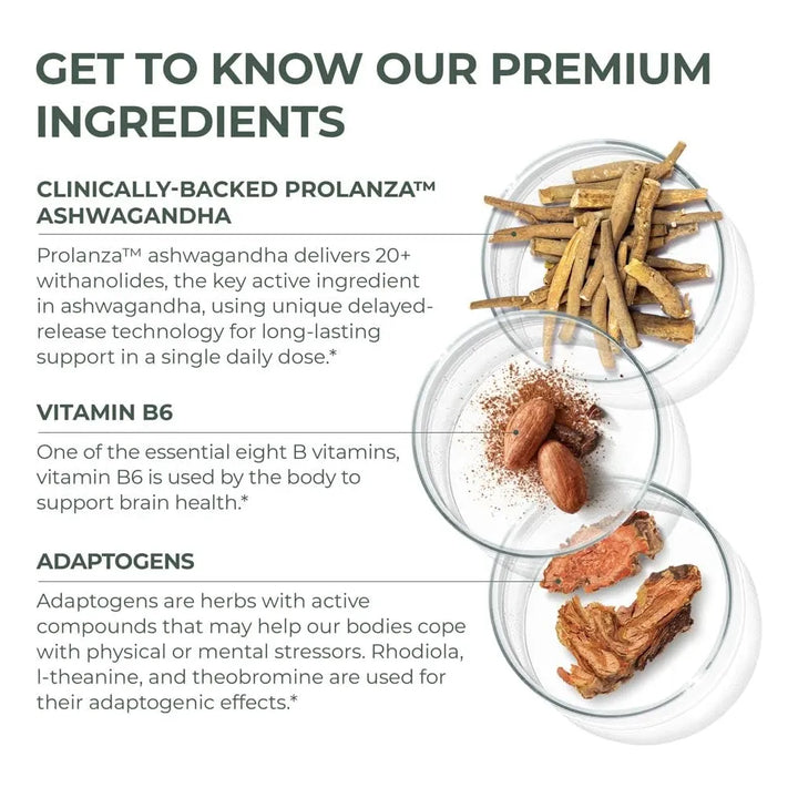 Este poderoso blend de ingredientes naturales ha sido cuidadosamente formulado para ofrecerte un apoyo integral contra el estrés. La ashwagandha, conocida como la 'reina de las hierbas adaptogénicas', trabaja en armonía con la L-teanina para crear una sinergia única que promueve la calma mental mientras mantiene tu enfoque y productividad.