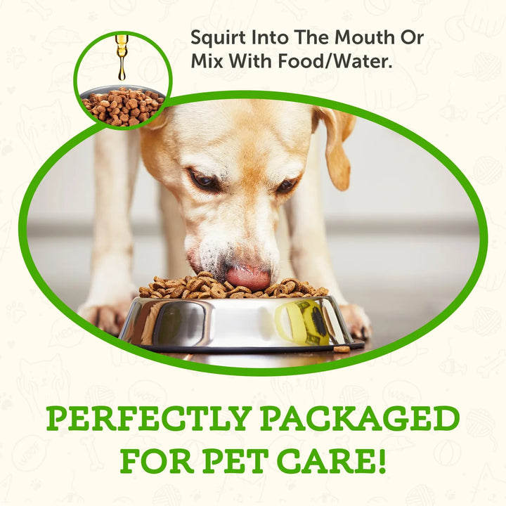 - 🐾 Fácil administración: Un gotero preciso te permite dosificar sin complicaciones, directamente en su boca o mezclado con su comida.