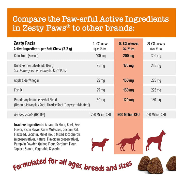 ¿Tu perro sufre de picazón constante, alergias estacionales o problemas digestivos? No dejes que las molestias afecten su felicidad. Nuestros Suplementos Masticables Zesty Paws están diseñados para brindar alivio rápido y efectivo, con ingredientes naturales que fortalecen su sistema inmunológico y mejoran su salud desde adentro hacia afuera.